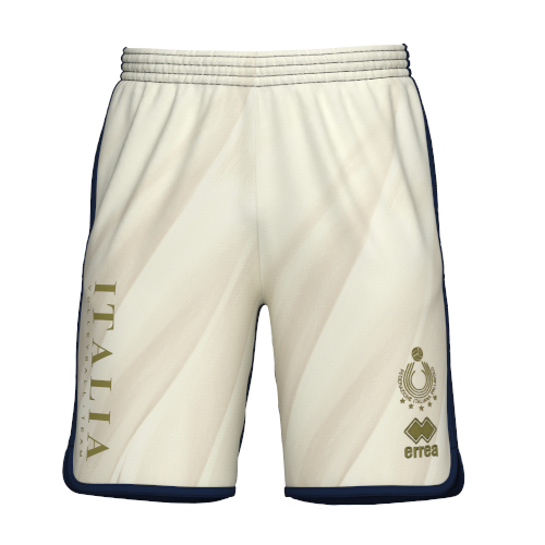Puri, essenziali, iconici: i bermuda bianchi FIPAV x Erreà sono dedicati a chi vuole vivere lo sport con sincerità e passione. Il contrasto con il retro blu navy dona carattere al capo, esaltato da loghi oro e dalla scritta verticale ITALIA.
